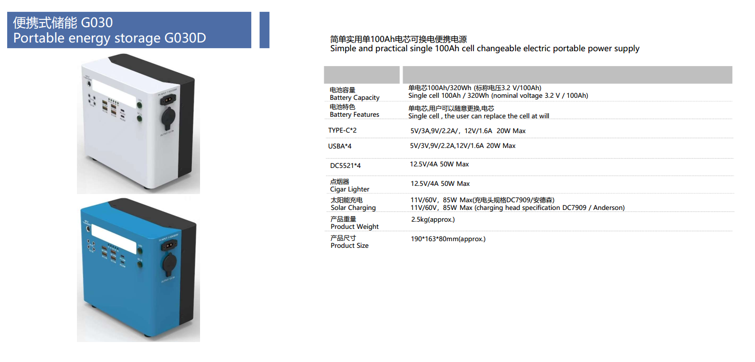 PowerShine Portable battery energy storage and home lighting system G030. Simple and practical single 100Ah cell changeable electric portable power supply.